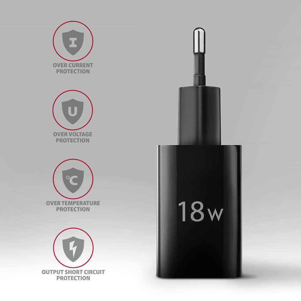 MOBILE CHARGER WALL USB 18W/1PORT BLACK ACU-QC18 AXAGON