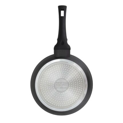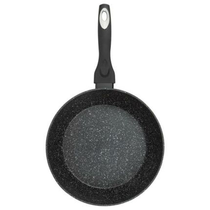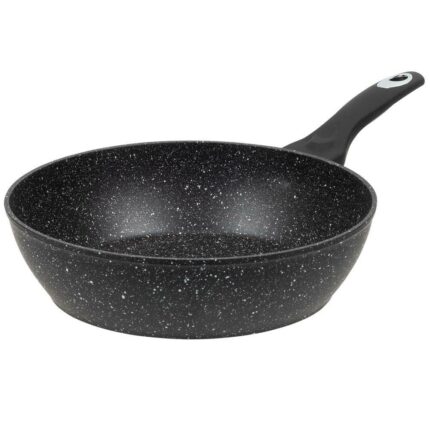 Vendor Homepage: resto-kitchenware.com/en/products/frypans/93064-Deep-frypan-%C3%9828-h=-77-cm-detailDescription: 93064 Deep frypan Ø28 h= 7.7 cm Internal non-stick marble coating Ergonomic soft touch handle with a